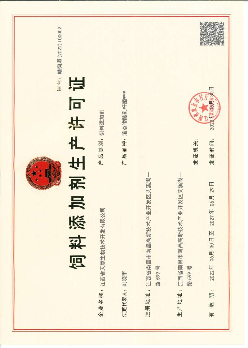飼料添加劑生產許可證